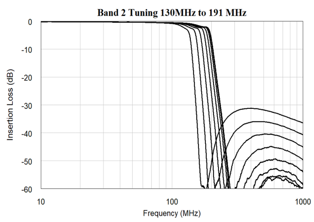 Analog Tunable 103 MHz to 191 MHz Lowpass MMIC Filter